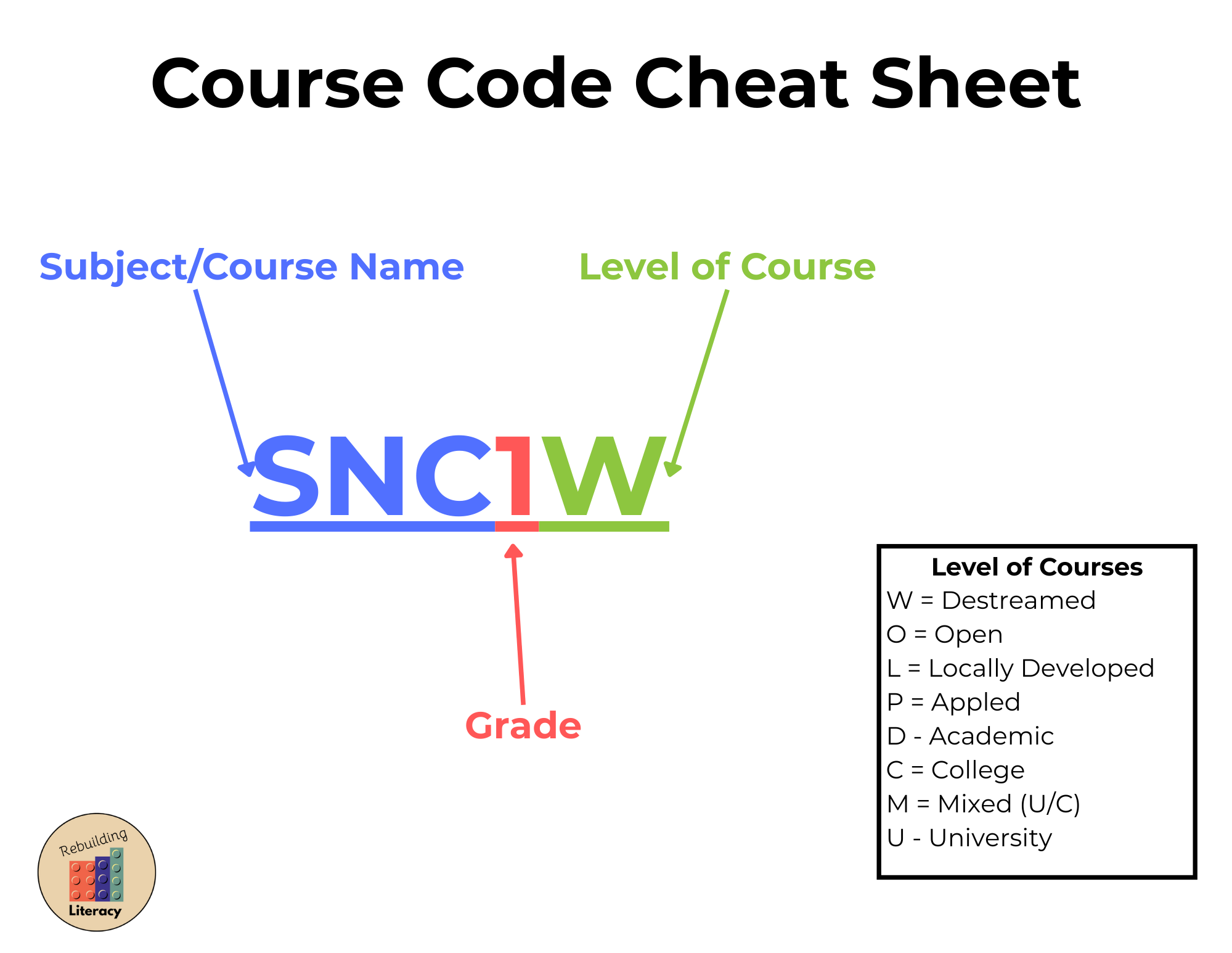 👉 You can download a free Ontario course code cheat sheet here.